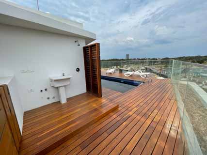 Terraza azotea con piscina, parrillero propio y baño.